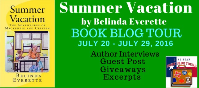 SUMMER VACATION The Adventures of Mackenzie and Cristen Book One, Second Edition by Belinda Everette Genre: Middle Grade / Contemporary Fiction Date of Publication: June 12, 2016 # of pages: 70 Scroll down for Giveaway! It’s the beginning of summer and Uncle Mike and Aunt Melanie invite Mackenzie for an extended summer vacation in theirContinueContinue reading “Lone Star Literary Life Blog Tour: SUMMER VACATION by Belinda Everette”
